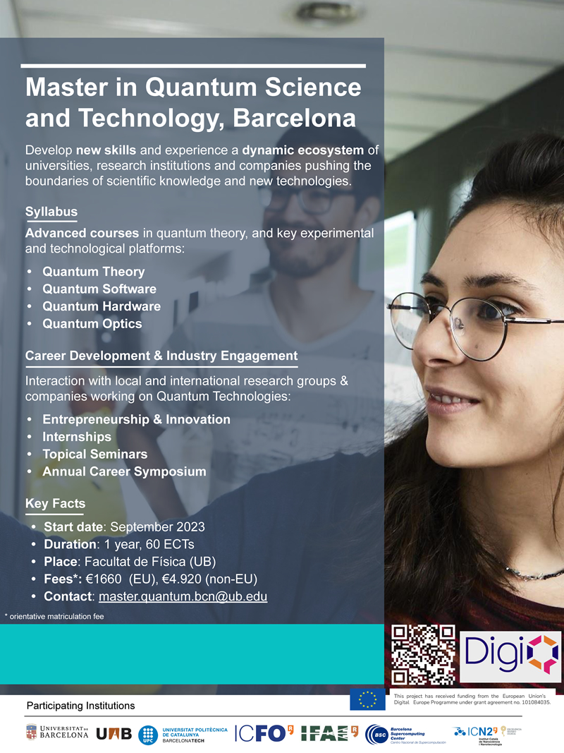 If you like to engage into the future of the Second Quantum Revolution - no other better place that the Master on "Quantum Science & Technology" in BARCELONA!